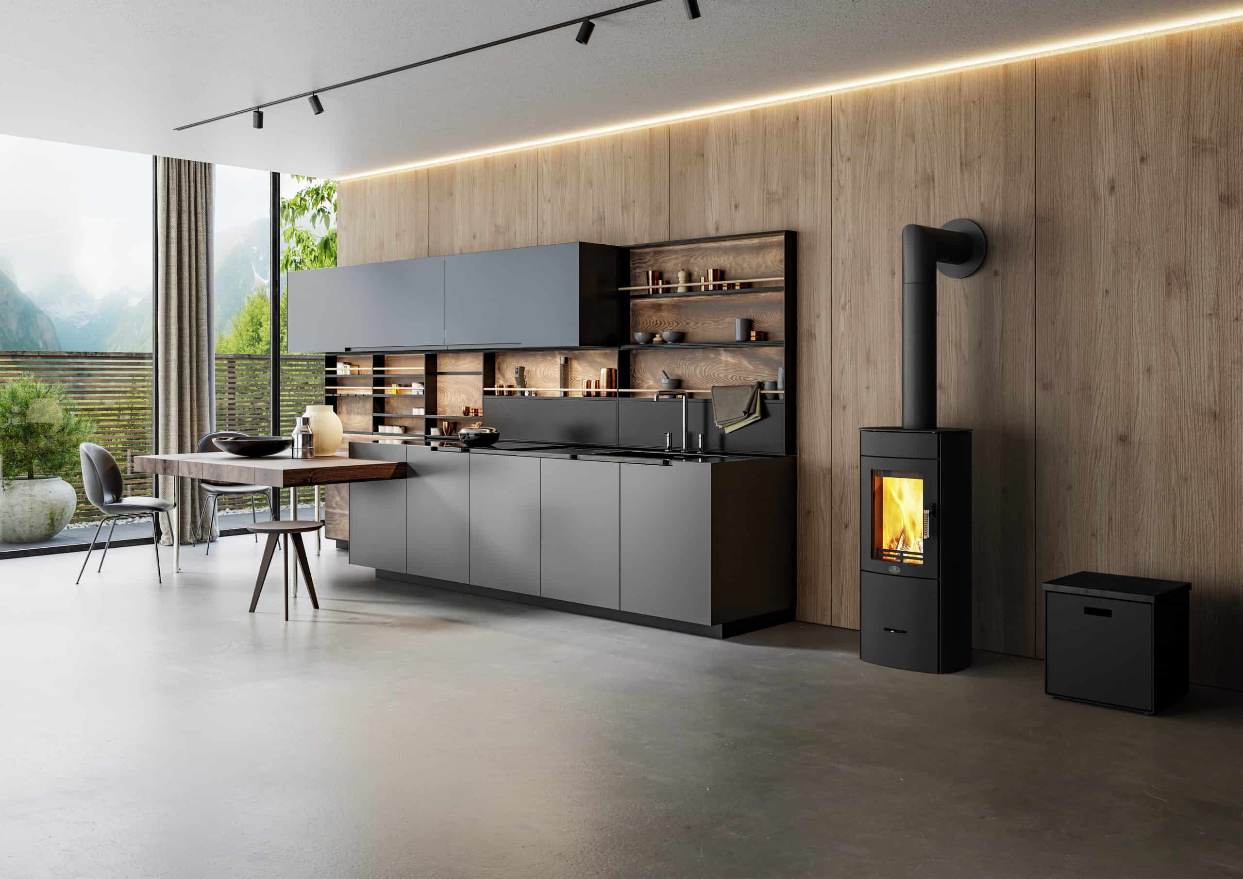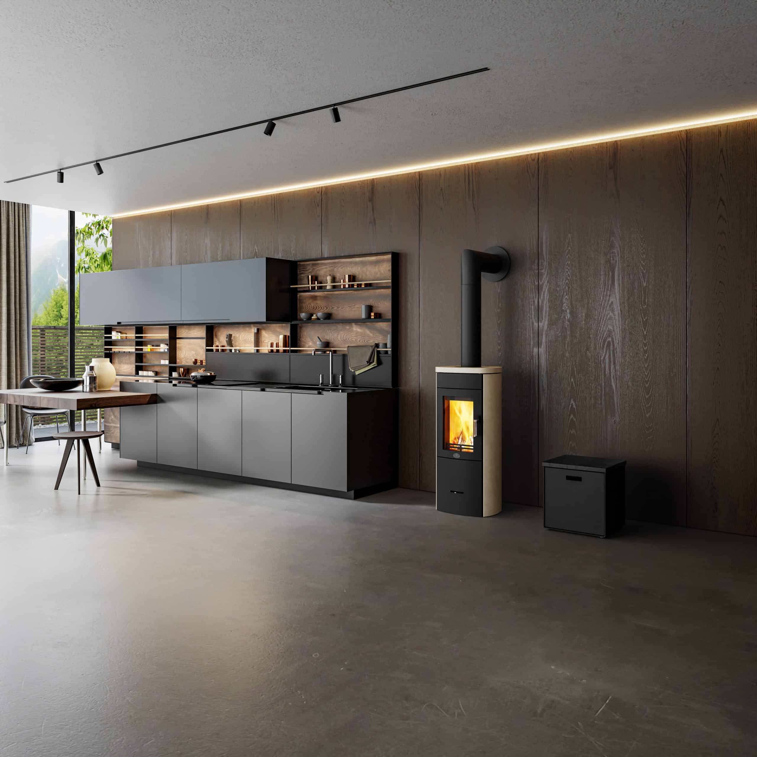 Samostoječe peči Max Blank odlikuje sodoben dizajn, najboljši materiali in možnost kurjenja s peleti in drvmi.